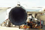 Note the specific fuel consumption for both engines with afterburner! If you read the numbers it is obvious why it is so important that the Tomcats (Bs & Ds) can launch from the carrier without the use of the fuel-eating afterburners: An F-14B/D needs some 800 kg of fuel per MINUTE at maximum take-off thrust! F-14 engine nozzle "parking" position: The TF30's afterburner nozzles are regulated open or closed individually by each engine's afterburner fuel control system. The afterburner fuel control pumps are individually operated using the hydraulic pressure produced by the combined and flight hydraulic systems. The port engine powers the combined hydrualic system and the starboard engine powers the flight hydraulic system. Click here to view a graphic showing the Engine Exhaust Noise Level or click here to see a graphic with the F-14's Engine Exhaust Temperature and Wake Velocity Distribution.