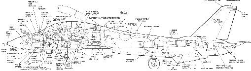 The general arrangement of aircraft systems in the F-14A is shown in graphics by the Grumman