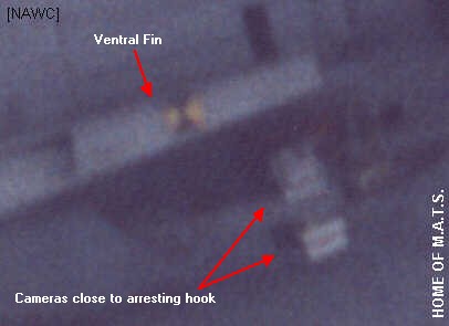 Test & Evaluation Equipment Sorry for the poor image quality! The cameras mounted to the fairing of the arresting hook are the same as used on the wing pylons on stations 1B and 8B.