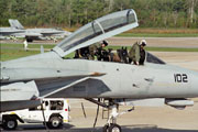 Final Flight Event admission ticket: ![]() When VF-31 F-14D AJ102 (BuNo 164904) was launched to do the final flight ... it almost broke down. As a back-up aircraft, VF-31 F-14D AJ107 (BuNo 164902) took off and made a final flight past the crowd before disappearing in the sky ... Below is a selection of photos taken either by myself or the US Navy: