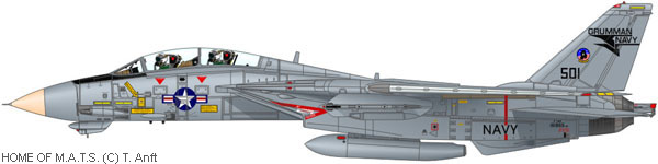 F-14 Tomcat Squadrons: VF-74 | VF-84 | VF-101 | VF-102 | VF-103 | VF-111 | VF-114 | VF-124 | VF-142 | VF-143 | VF-154 VF-191 | VF-194 | VF-201 | VF-202 | VF-211 | VF-213 | VF-301 | VF-302 | VF-1285 | VF-1485 VF-1486 | VX-4 | VX-9 | NAWC | NATC | NFWS | NASA | Iranian Air Force Carrier Airwings | Squadron Awards F-14 Tomcat: Other Topics: Start Page Foreword FAQ Updates Copyright © by Torsten Anft |