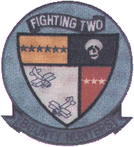 Fighter Squadron TWO traces its roots to the earliest days of Naval Aviation. Commisioned in 1922, Fighting TWO was the first squadron to deploy aboard the US Navy's first aircraft USS Langley (CV-1). Throughout the 1920's and 30's, VF-2 operated from a variety of carriers and saw aviation's transmission from two wing, fabric covered bi-planes to the first all-metal monoplanes. During WWII, VF-2 compiled an outstanding record in combat. From the carrier USS Lexington (CV-2), VF-2 halted the Japanese expansion toward Australia during the Battle of the Coral Sea. While flying the F6F Hellcat fro mthe decks of USS Enterprise (CV-6) and USS Hornet (CV-12), the squadron destroyed over 500 enemy aircraft and sank over 50,000 tons of enemy shipping while losing only seven of their own planes. Life Magazine described Fighting TWO as "The Hottest Fighter Squadron in the Pacific". At the end of WWII, VF-2 was disestablished, and remained absent from Naval Aviation for 27 years until it was selected to introduce the F-14 Tomcat to the fleet. Reestablished at NAS Miramar 14 October 1972 the squadron completed crew training and received it's first F-14s in July 1973. Full squadron strength of 12 aircraft was reached in spring 1974 since Tomcat production was still running at a fairly low rate. As with VF-1 the squadron flew top cover over the Saigon evacuation in Operation Frequent Wind. The squadron formed the TARPS unit for both CVW-14 and CVW-2, deploying aboard USS Enterprise (CVN-65) at first, then switching to USS Ranger (CV-61) where they stayed till 1993, apart from a single cruise aboard the USS Kitty Hawk (CV-63) in 1984. During it's time as an F-14 operator VF-2 has been highly successful in the various awards it has collected. These include 3 COMNAVAIRPAC (Commander of Naval Air Forces Pacific) Battle "E"s during the 1980's. A Battle "E" signifies the squadron is the most efficient in the Pacific fleet. VF-2 also won 3 Boola-Boola awards between 1985 and 1987, a prize given to the squadron that accumulates the most points on it's annual missile shoot. The coveted "Mutha" trophy was also won 3 times, an award presented to the best F-14 squadron in the Pacific fleet. VF-2 has also won awards in the West Coast TARPS, Fighter Derby, ECCM and High Noon Gunnery competitions.