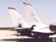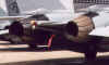Note the specific fuel consumption for both engines with afterburner! If you read the numbers it is obvious why it is so important that the Tomcats (Bs & Ds) can launch from the carrier without the use of the fuel-eating afterburners: An F-14B/D needs some 800 kg of fuel per MINUTE at maximum take-off thrust! F-14 engine nozzle "parking" position: The TF30's afterburner nozzles are regulated open or closed individually by each engine's afterburner fuel control system. The afterburner fuel control pumps are individually operated using the hydraulic pressure produced by the combined and flight hydraulic systems. The port engine powers the combined hydrualic system and the starboard engine powers the flight hydraulic system. Click here to view a graphic showing the Engine Exhaust Noise Level or click here to see a graphic with the F-14's Engine Exhaust Temperature and Wake Velocity Distribution.