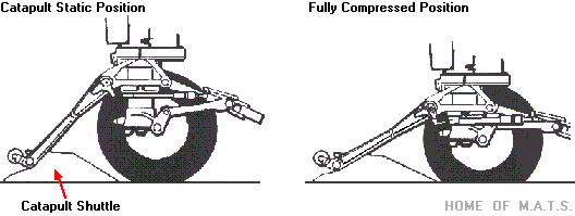 F-14 Nose Landing Gear![]() The Approach Speed Indexer is the same indicator instrument as in the pilot's cockpit, just that the approach indexer on the noselanding gear is for the aircraft carrier's Landing Signal Officer. With the illuminated lights of the indexer, the LSO can judge the speed of the approaching F-14: Excerpt from F-14B NATOPS flight manual: "2.33.4 Approach Lights. The approach lights consist of red, amber, and green indicator lights above the nosegear strut. The lights are actuated by the angle-of-attack indicator and provide qualitative angle-of-attack information to the landing signal officer during landing approaches. A flasher unit in the angle-of-attack system will cause the approach lights to pulsate when the arresting hook is up with the landing gear down and the HOOK BY-PASS switch in the CARRIER position. When the FIELD position of the HOOK BY-PASS switch is selected, the flasher is disabled. A green approach light indicates a high angle-of-attack, slow airspeed; an amber light indicates optimum angle-of-attack; and a red approach light indicates a low angle-of-attack, fast airspeed." The approach lights do not provide any indication as to the relative flight path position, high or low, of the aircraft. It is possible to be fast and low as well as high and slow. In fact a common approach error noted by LSOs is a "high, fast start." The color of the approach light illuminated is solely an indication of aircraft's current angle-of-attack (airspeed). ![]()
