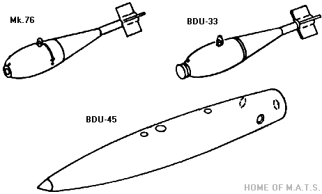 the same bomb run practices. Also, the smaller Mk.76 and BDU-33 practice bombs are often used