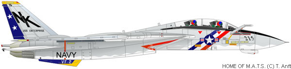 F-14 Tomcat Squadrons: VF-74 | VF-84 | VF-101 | VF-102 | VF-103 | VF-111 | VF-114 | VF-124 | VF-142 | VF-143 | VF-154 VF-191 | VF-194 | VF-201 | VF-202 | VF-211 | VF-213 | VF-301 | VF-302 | VF-1285 | VF-1485 VF-1486 | VX-4 | VX-9 | NAWC | NATC | NFWS | NASA | Iranian Air Force Carrier Airwings | Squadron Awards F-14 Tomcat: Other Topics: Start Page Foreword FAQ Updates Copyright © by Torsten Anft |