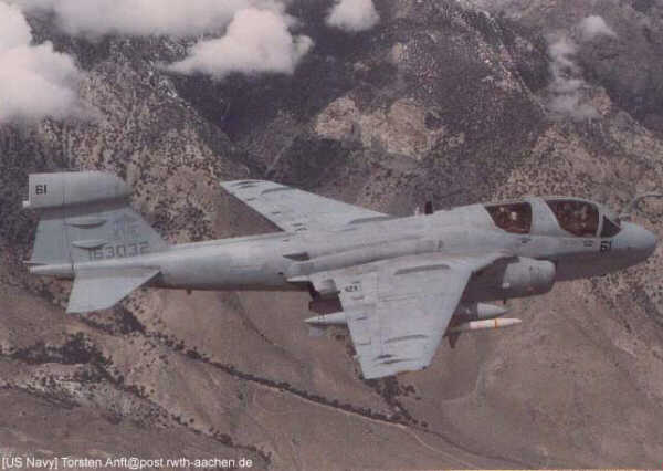 EA-6B Prowler The EA-6B is a follow-on development of the EA-6A, an electronic countermeasures version of the A-6 Intruder for the US Marine Corps. Designed as a carrier-borne electronic warfare aircraft, the first EA-6B prototype flew on 25 May 1968 and is still in service with the US Navy. The Prowler is manned by one pilot and three electronic countermeasures operators. ![]()