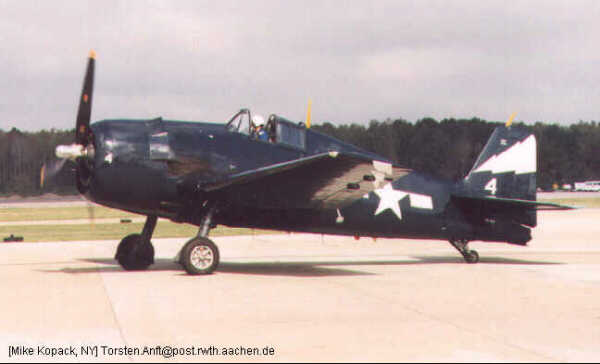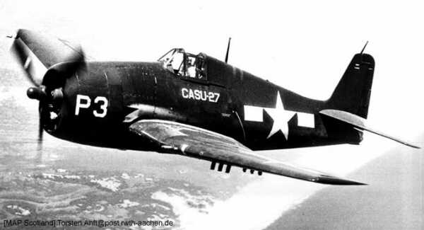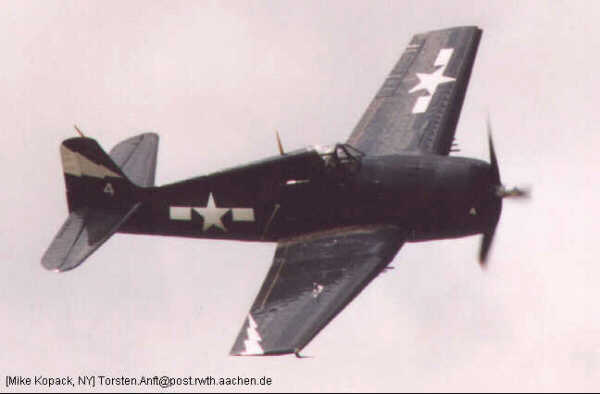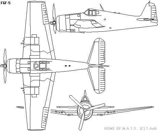 F6F Hellcat First flown on 26 June 1942, the F6F Hellcat became the Navy's most significant fighter in WWII. After testing of four XF6F prototypes the delivery of production models began in early 1943. Until mid-1944 some 4,423 F6F-3s had been delivered by Grumman including some 205 F6F-3Ns night fighters (APS-6 radar under starboard wing), 18 F6F-3Es with the APS-4 radar and 252 F6F-3s (Hellcat I) for the British Royal Navy. The Hellcat story continued and during 1944 the new F6F-5s were delivered. The F6F-5 was modified to carry 2,000 lbs bombs under the center-fuselage and six rockets under each wing. An unbelieveable 6,681 F6F-5s were produced plus 1,189 F6F-5Ns (APS-6 radar under the starboard wing) and another 930 F6F-5s for the Royal Navy (known as Hellcat II). When the production ended in November 1945, the number of Hellcats produced totalled to 12,275! These Hellcats claimed some 75 percent (4,947!) of the Navy's air-to-air kills. Finally in 1946, LCDR Roy M. "Butch" Voris was selected to organize and lead a flight exhibition team ... todays Blue Angels. They completed their first airshow flying the F6F-5 Hellcat in June 1946 at Jacksonville, FL. ![]()